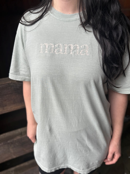 Embroidered Mama CC Tee - Sage